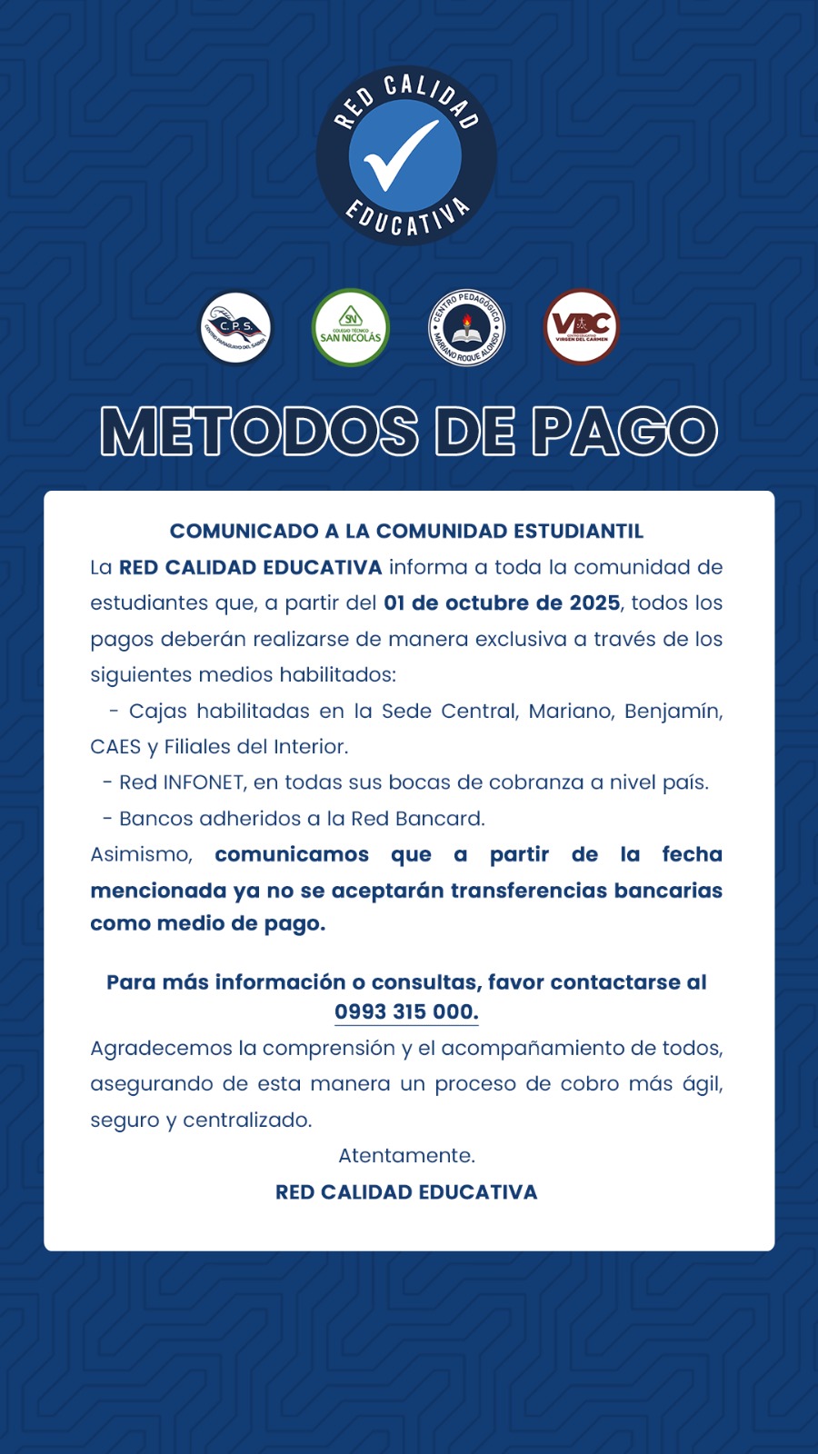 Caja de cobranza de la Sede Central, Filiales y CAE (Centro de Atención al Estudiante).